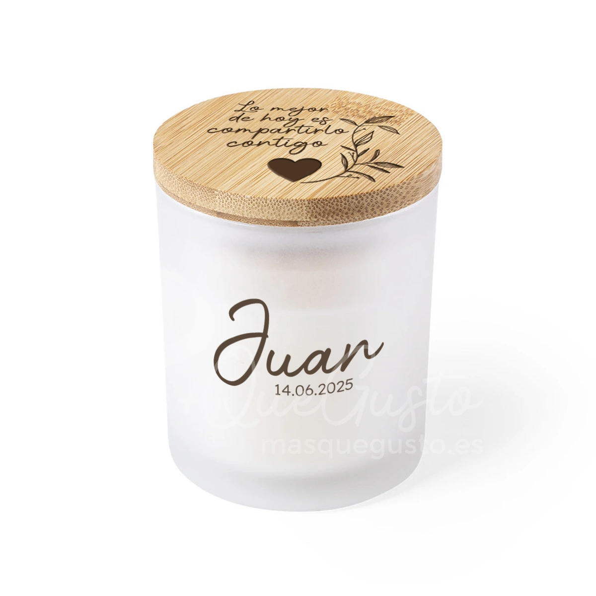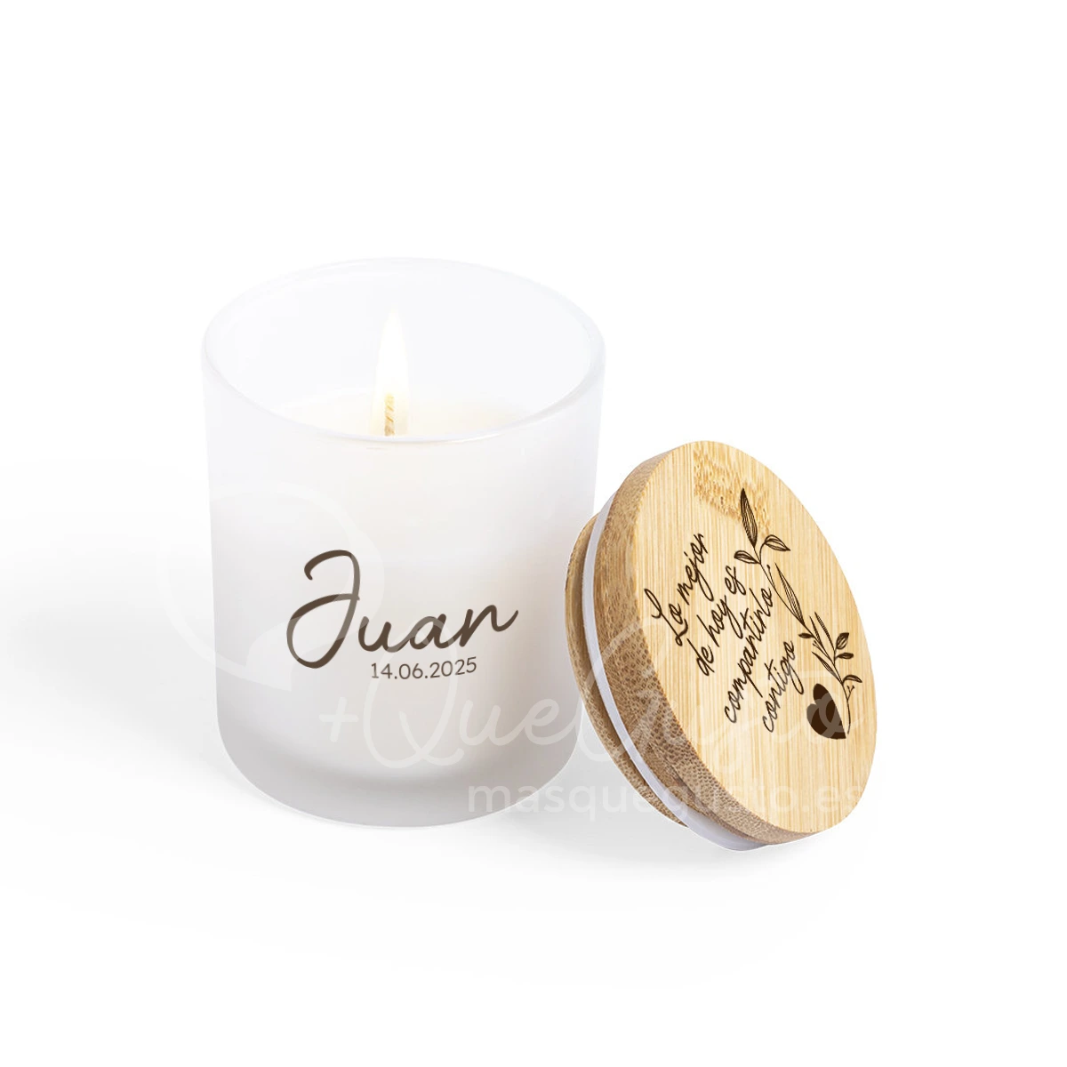 - Personalización de tapa con mensaje y vela con nombres + fecha.